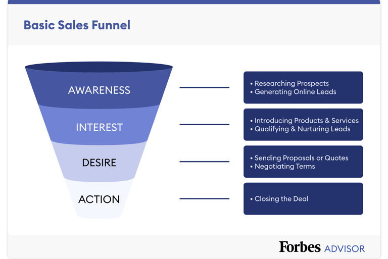 At its core, a sales funnel is a graphic representation of a potential customer's journey, commencing with their first encounter with your business and concluding in a purchase. Typically, the funnel is divided into four stages: